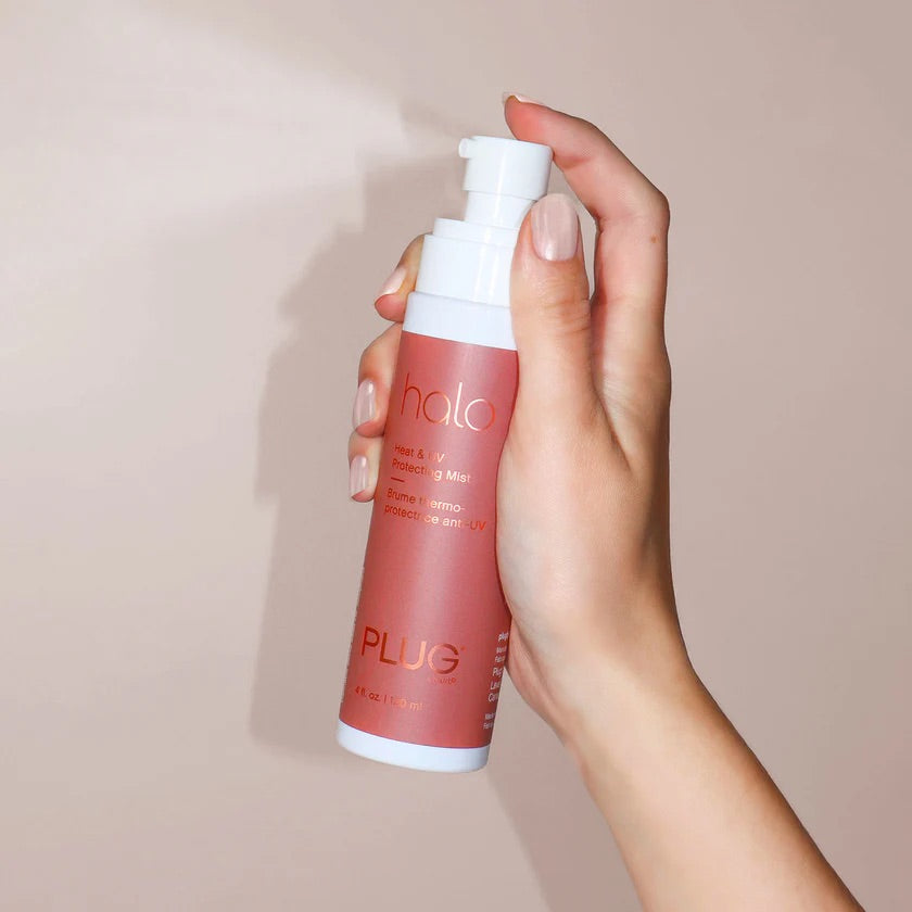 La Brume Thermo-Protectrice Anti-UV Halo – Plug by Must52 est conçue pour offrir une protection optimale contre la chaleur des outils coiffants et les rayons UV, tout en apportant une brillance naturelle à vos cheveux.
